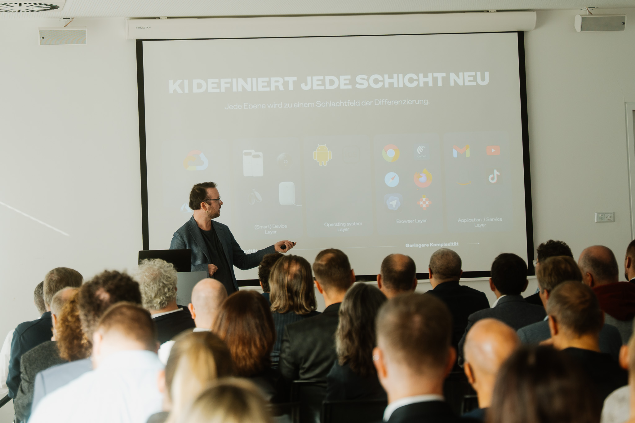 Investitionen und Mut sind gefragt, um die Zukunft aktiv mitzugestalten, sagte der Referent abschließend. Wer jetzt zögere und sich zurücklehnt, anstatt „ein bisschen mutiger die Steine zu werfen“, riskiere, von der Geschwindigkeit der Entwicklung überrollt zu werden.