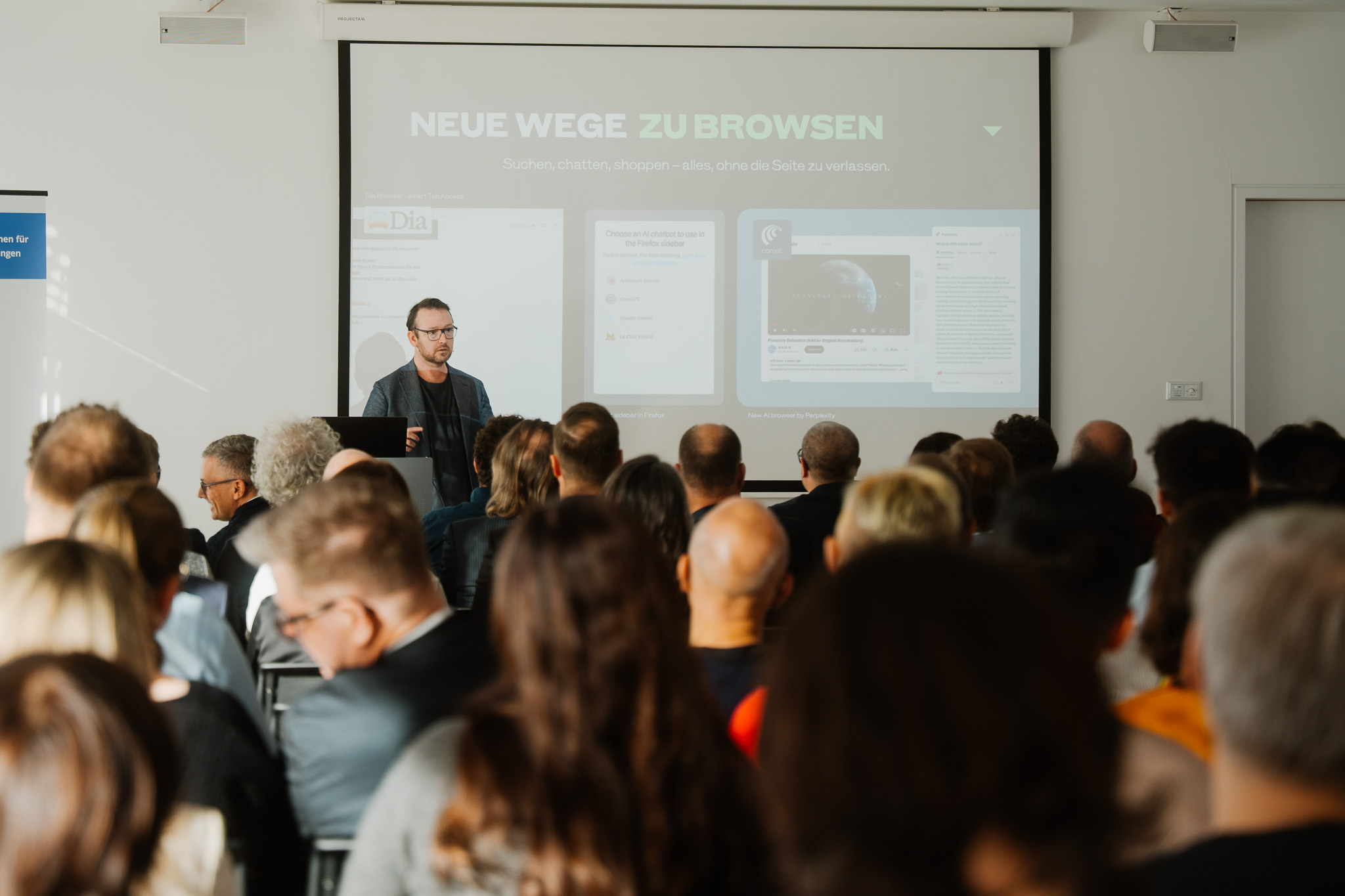 Neben der ökonomischen Disruption warnte Kraus vor einem massiven Verlust der digitalen Kompetenz. Die kritische Überprüfung von Quellen werde vernachlässigt, und Nutzer neigten dazu, den Maschinen blind zu vertrauen. Besonders gefährlich sei die perfektionierte, manipulative Welle der KI-Voice-Agenten, die einen Enkeltrick möglich macht, indem Stimmen und Kontexte perfekt nachgeahmt werden. Seine dringende Empfehlung, um auf derartige Betrugsmaschen nicht herein zu falen: „Macht geheime Codewörter aus, alles andere kann böse enden.“